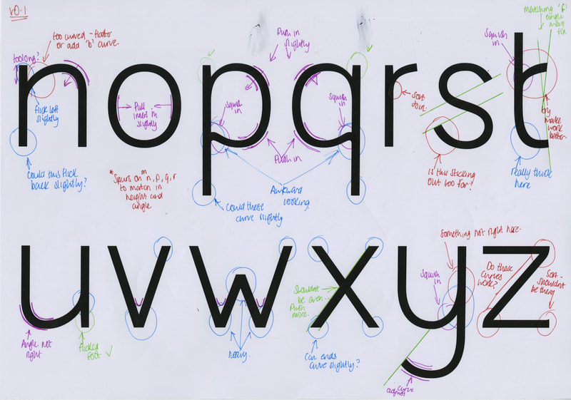 Happy with the overall look of the type, especially in the bolder weights. Kerning is still a big issue, even when manually applied. Some of the letters seem a bit heavier than others - need to sort this.